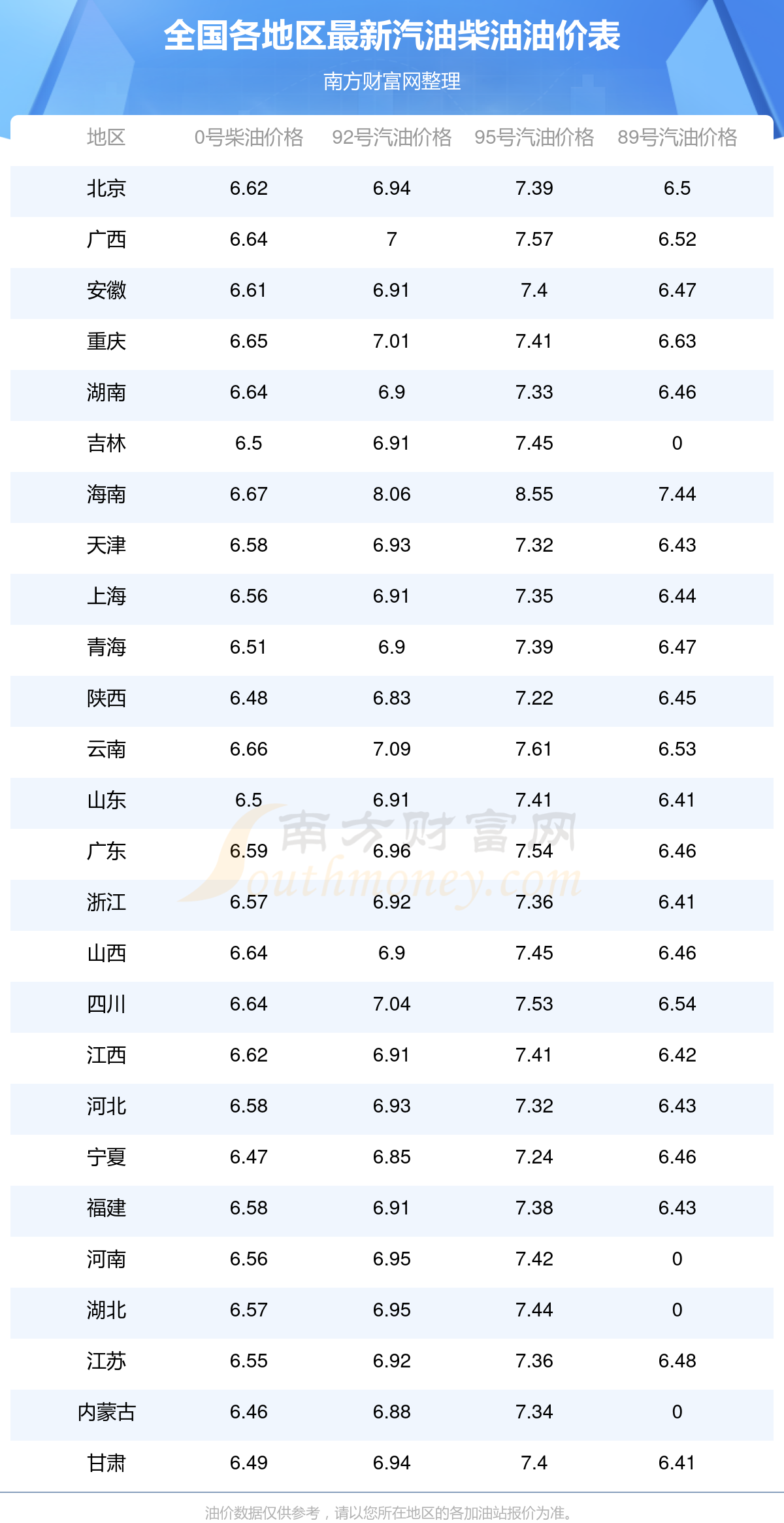 2025年11月16日全國(guó)油價(jià)調(diào)整及最新汽油價(jià)格表