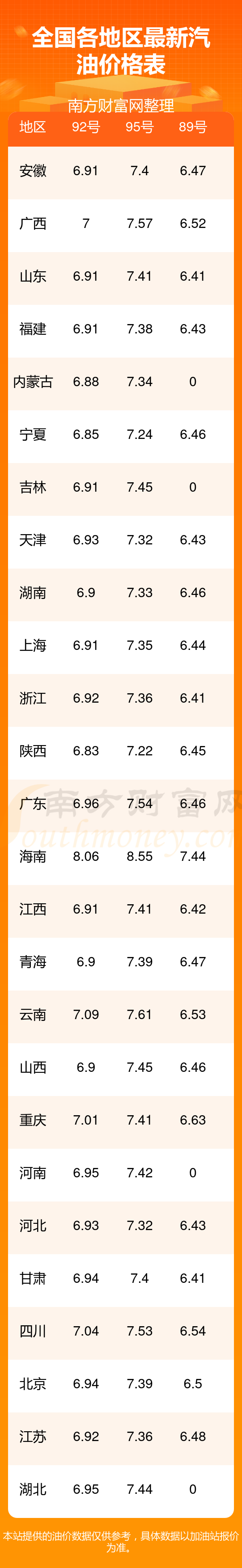 油價(jià)數(shù)據(jù)僅供參考,請(qǐng)以您所在地區(qū)的各加油站報(bào)價(jià)為準(zhǔn)。