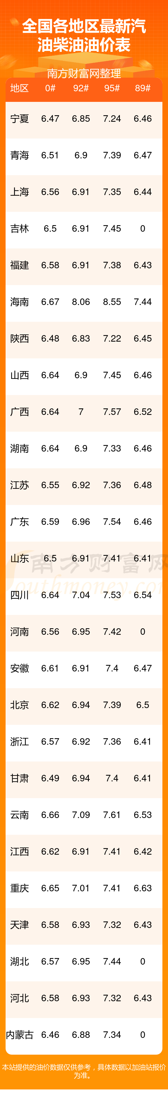 油價數(shù)據(jù)僅供參考,請以您所在地區(qū)的各加油站報價為準。