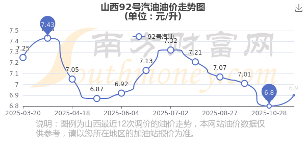 11月16日山西汽油、柴油每升的價格具體為:本輪油價調(diào)整時間為11月11日,92號汽油是6.9元,升了0.1元,升幅達1.47%;95號汽油是7.45元,升了0.11元,升幅達1.5%;89號汽油為6.46元,升了0.1元,升幅達1.57%;0號柴油為6.64元,升了0.1元,升幅達1.53%。