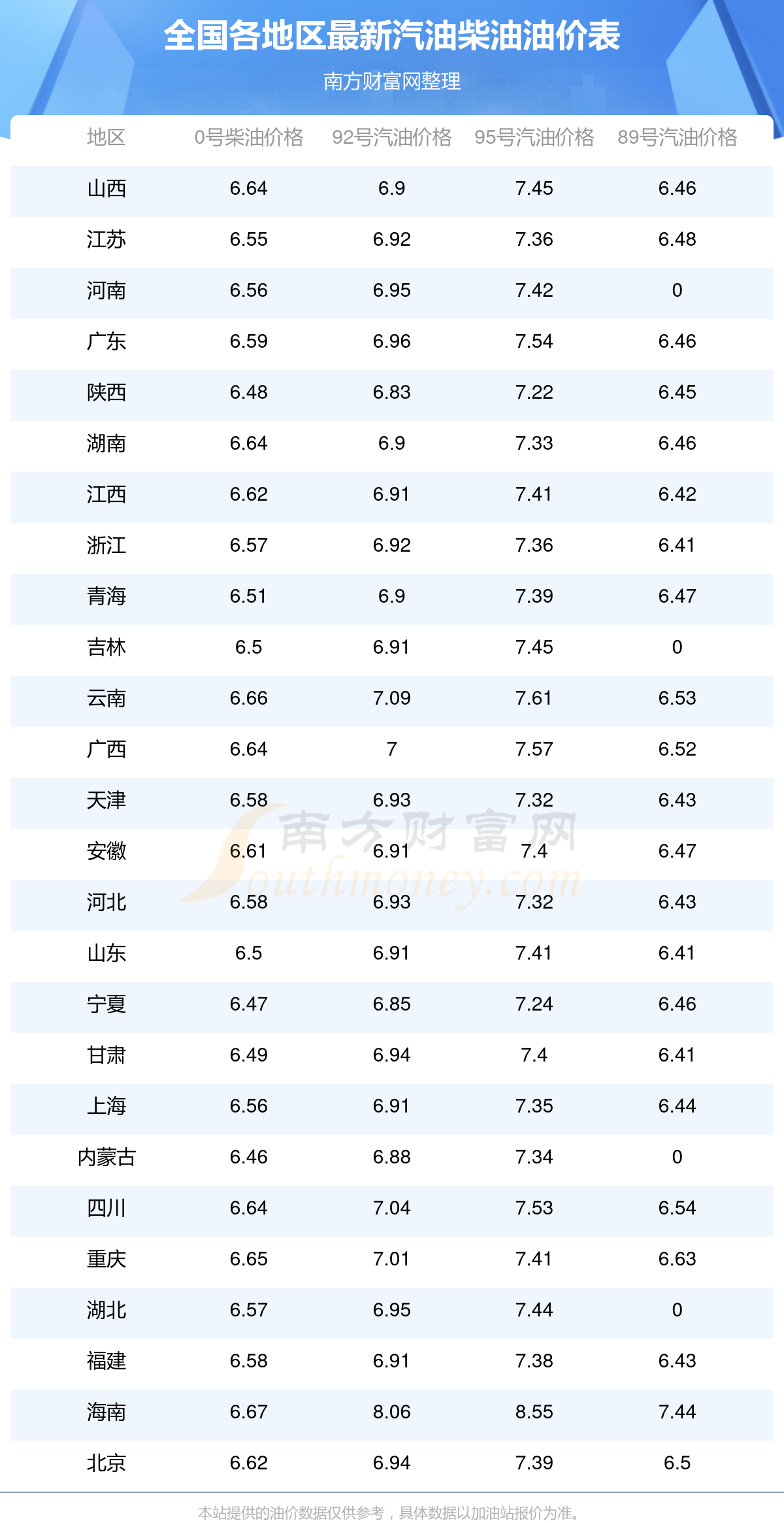 2025年11月16日全國(guó)油價(jià)調(diào)整及最新汽油價(jià)格表