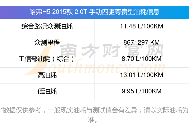 根據(jù)車主實測數(shù)據(jù),該車型低油耗為9.95L/100km,高油耗為13.01L/100km,綜合路況眾測油耗為11.48L/100km,工信部綜合油耗為8.70L/100km。