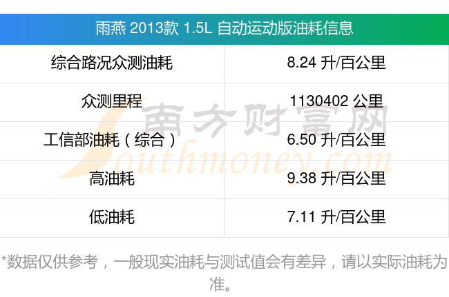 根據(jù)多位車(chē)主實(shí)測(cè)得出數(shù)據(jù),該車(chē)型低油耗為7.11升/百公里,高油耗為9.38升/百公里,綜合路況眾測(cè)油耗為8.24升/百公里,工信部綜合油耗為6.50升/百公里。