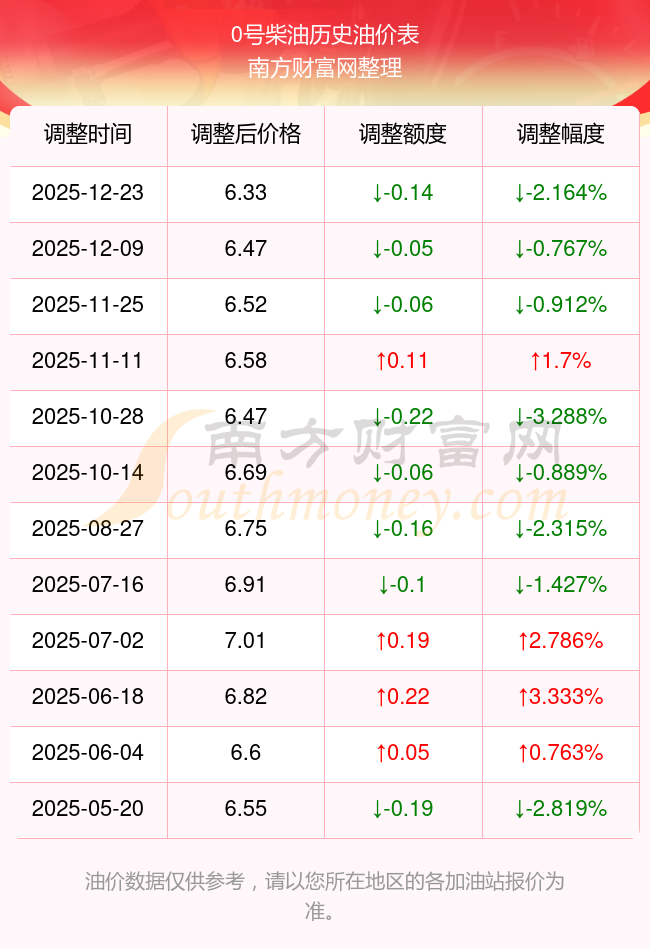 油價調(diào)整最新消息:下一輪油價調(diào)整時間12月31日24時。12月25日河北汽油、柴油每升的價格為12月23日調(diào)整后的價格,92號汽油為6.69元,下跌了0.14元,下跌幅達2.05%;95號汽油為7.07元,下跌了0.15元,下跌幅達2.08%;89號汽油為6.21元,下跌了0.12元,下跌幅達1.9%;0號柴油為6.33元,下跌了0.14元,下跌幅達2.16%。