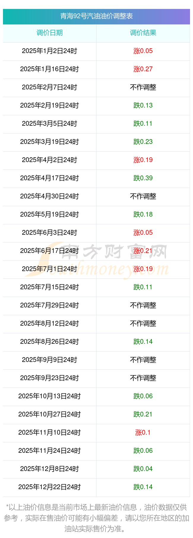 油價(jià)數(shù)據(jù)僅供參考,請以您所在地區(qū)的加油站報(bào)價(jià)為準(zhǔn)。南方財(cái)富網(wǎng)發(fā)布此信息的目的在于傳播更多信息,對使用該油價(jià)信息所導(dǎo)致的結(jié)果概不承擔(dān)任何責(zé)任。