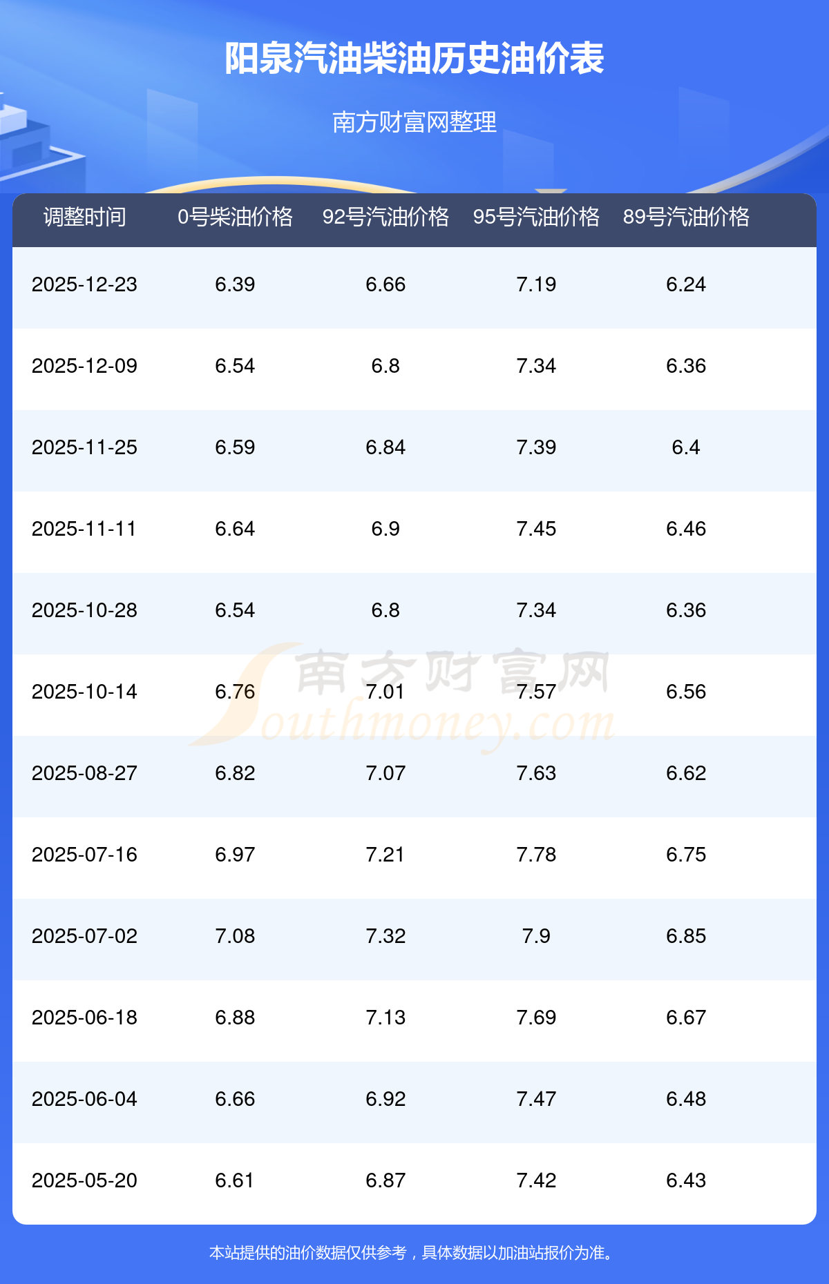 2025年汽油柴油歷史油價調(diào)整一覽表