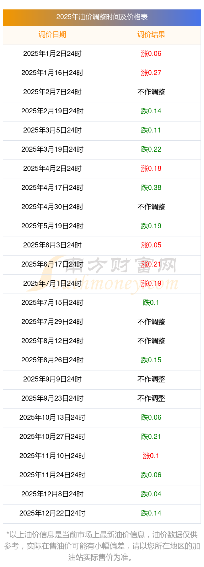 2025年12月30日全國(guó)油價(jià)調(diào)整時(shí)間及價(jià)格一覽表