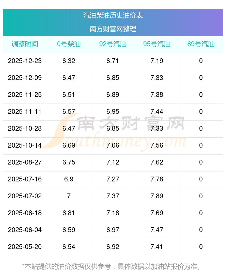 2025年油價(jià)調(diào)價(jià)窗口日期表: