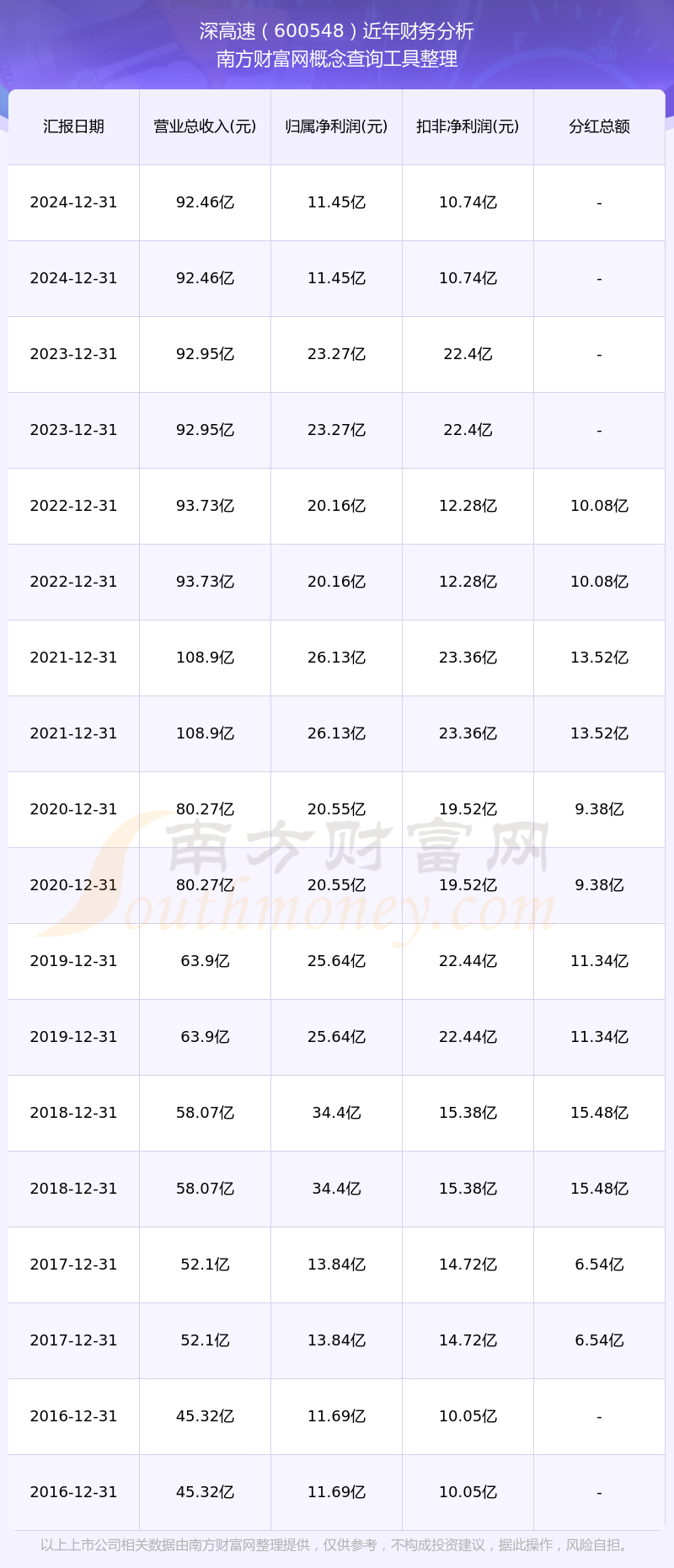 深高速2024年總營收92.46億,同比增長-0.53%;凈利潤11.45億,同比增長-50.8%;銷售毛利率31.6%。