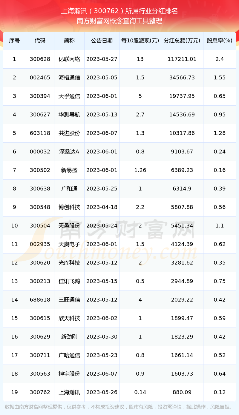 二、上海瀚訊300762行業(yè)分紅排名