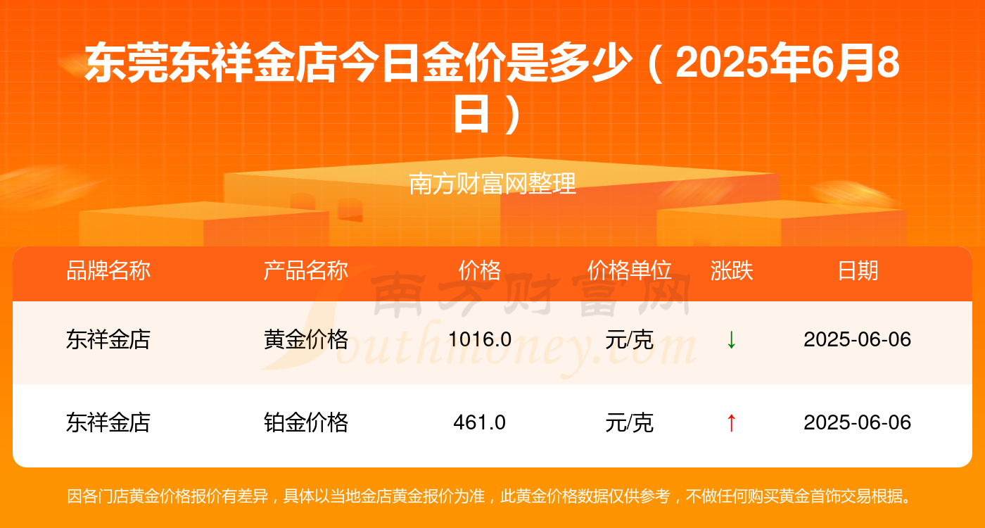 2025年6月8日東莞東祥金店黃金價格表最新公布_東莞東祥金店金價今日價格是多少錢,2分鐘帶你了解