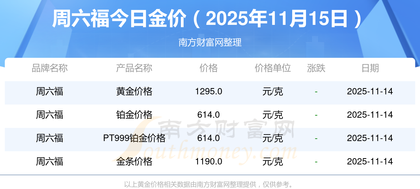 周六福今日金價(jià)的具體數(shù)字是怎樣的?數(shù)據(jù)來了:黃金價(jià)格1333.0元/克,鉑金價(jià)格646.0元/克,飾品金價(jià)(內(nèi)地)1333.0元/克,黃金飾品(香港)46320.0,鉑金價(jià)格(香港)18410.0,金條價(jià)格(香港)41780.0,金條金價(jià)(內(nèi)地)1167.0元/克,黃金價(jià)格1322.0元/克,鉑金價(jià)格600.0元/克,足金價(jià)格1322.0元/克,黃金價(jià)格1295.0元/克。