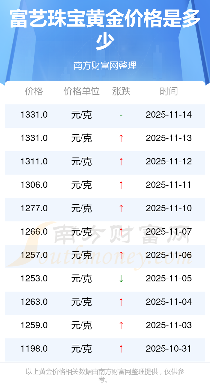 2025年11月15日富藝珠寶黃金價格今日價格_黃金價格多少錢一克,一起來看看吧!