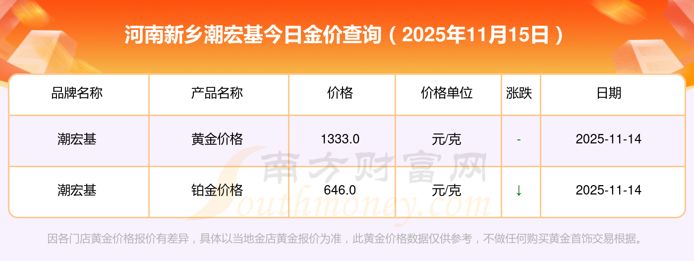 想了解此刻黃金價(jià)格,今天黃金一克的售價(jià)為多少? 河南新鄉(xiāng)潮宏基當(dāng)下黃金一克的價(jià)錢是多少?