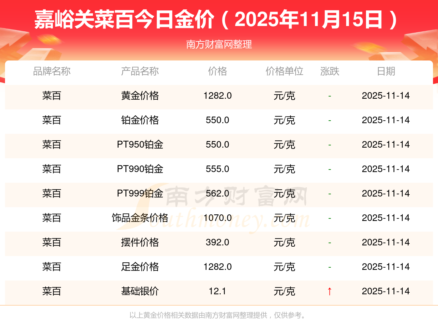 嘉峪關(guān)菜百金價今日價格最新_嘉峪關(guān)菜百黃金多少錢一克2025年11月15日,隨小編來了解一下詳情。
