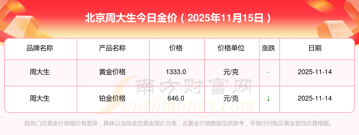 現(xiàn)在北京周大生黃金價(jià)格表_北京周大生黃金多少錢一克(2025年11月15日)