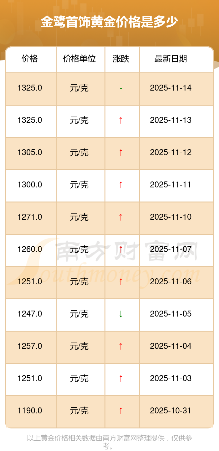 2025年11月15日金鷺首飾黃金價(jià)格多少一克?最新金鷺首飾黃金價(jià)格表查詢,一起來看看吧!