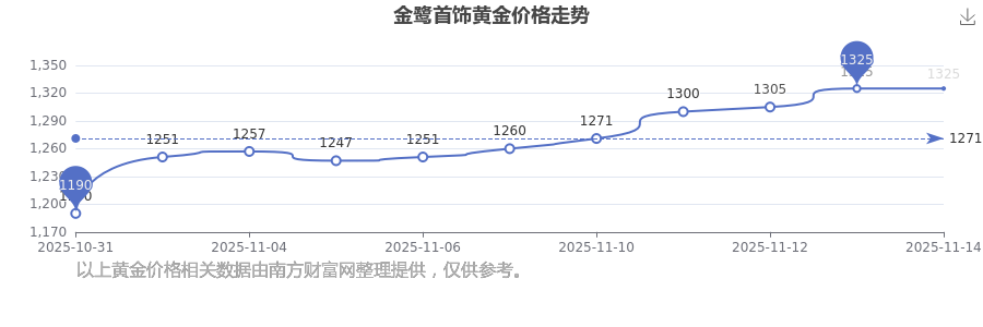 今日金鷺首飾所公布的 黃金價(jià)格最新價(jià)格為1325.0元/克。