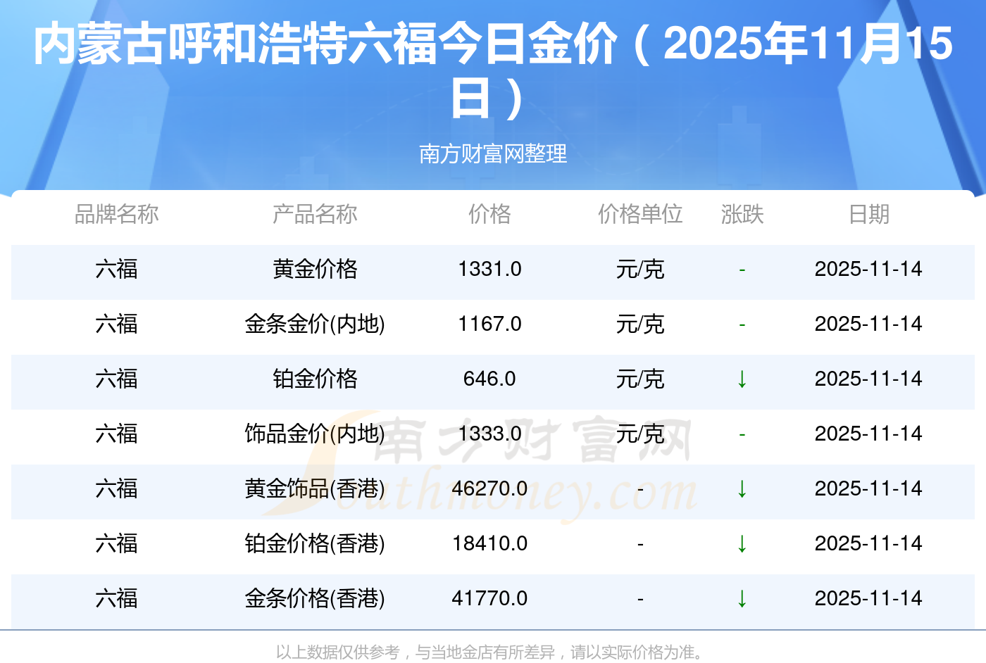 內(nèi)蒙古呼和浩特六福今日金價(jià)多少錢一克