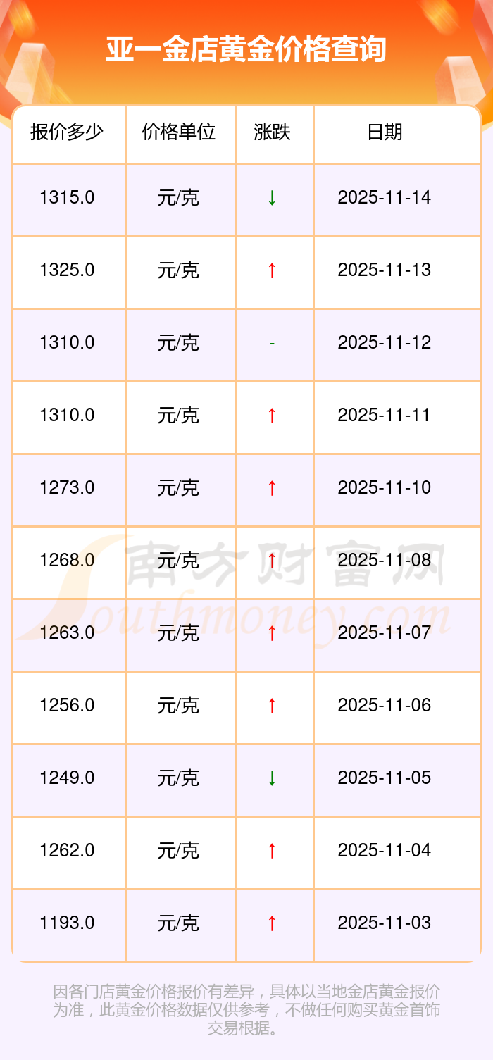 以上數據僅供參考,與當地金店有所差異,請以實際價格為準。