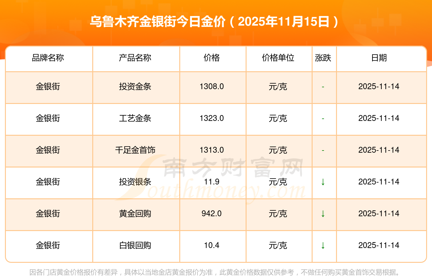 烏魯木齊金銀街黃金價格多少一克