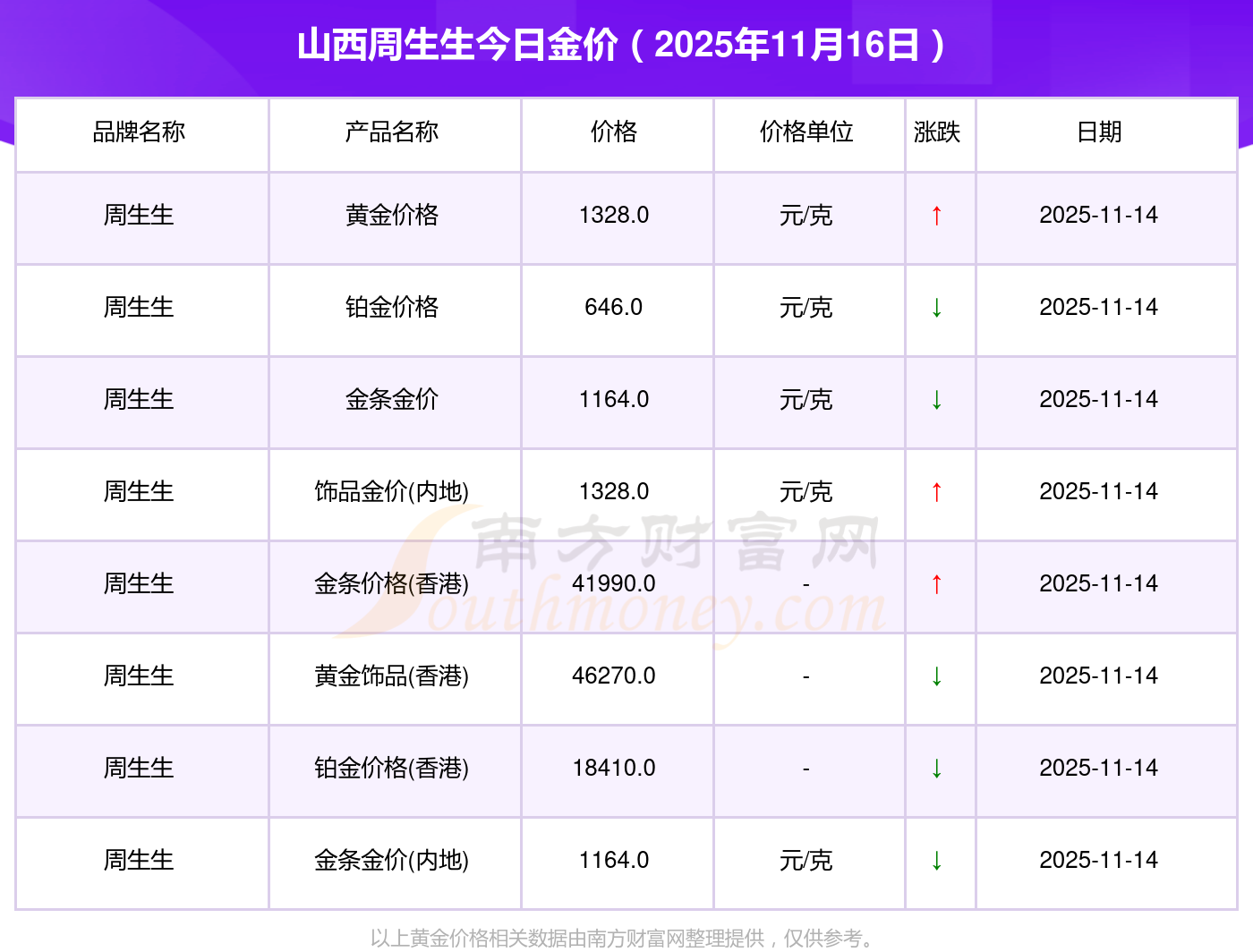 2025年11月16日山西周生生現(xiàn)在購買一克黃金需要支付多少錢?黃金價格1333.0元/克,鉑金價格646.0元/克,飾品金價(內(nèi)地)1333.0元/克,黃金飾品(香港)46320.0,鉑金價格(香港)18410.0,金條價格(香港)41780.0,金條金價(內(nèi)地)1167.0元/克,黃金價格1322.0元/克,鉑金價格600.0元/克,足金價格1322.0元/克,黃金價格1295.0元/克。