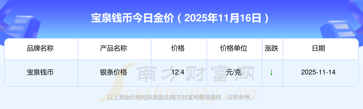 2025年11月16日寶泉錢幣最新價(jià)格:黃金價(jià)格1333.0元/克,鉑金價(jià)格646.0元/克,飾品金價(jià)(內(nèi)地)1333.0元/克,黃金飾品(香港)46320.0,鉑金價(jià)格(香港)18410.0,金條價(jià)格(香港)41780.0,金條金價(jià)(內(nèi)地)1167.0元/克,黃金價(jià)格1322.0元/克,鉑金價(jià)格600.0元/克,足金價(jià)格1322.0元/克,黃金價(jià)格1295.0元/克。
