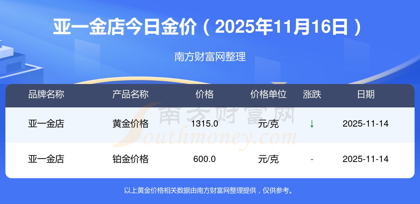 今天是2025年11月16日,周大福、周大福、周大福、周大福、周大福、周大福、周大福、老鳳祥、老鳳祥、老鳳祥、周六福等各大金店品牌黃金價(jià)格最新價(jià)格如下:周大福1333.0元/克、周大福646.0元/克、周大福1333.0元/克、周大福46320.0、周大福18410.0、周大福41780.0、周大福1167.0元/克、老鳳祥1322.0元/克、老鳳祥600.0元/克、老鳳祥1322.0元/克、周六福1295.0元/克。