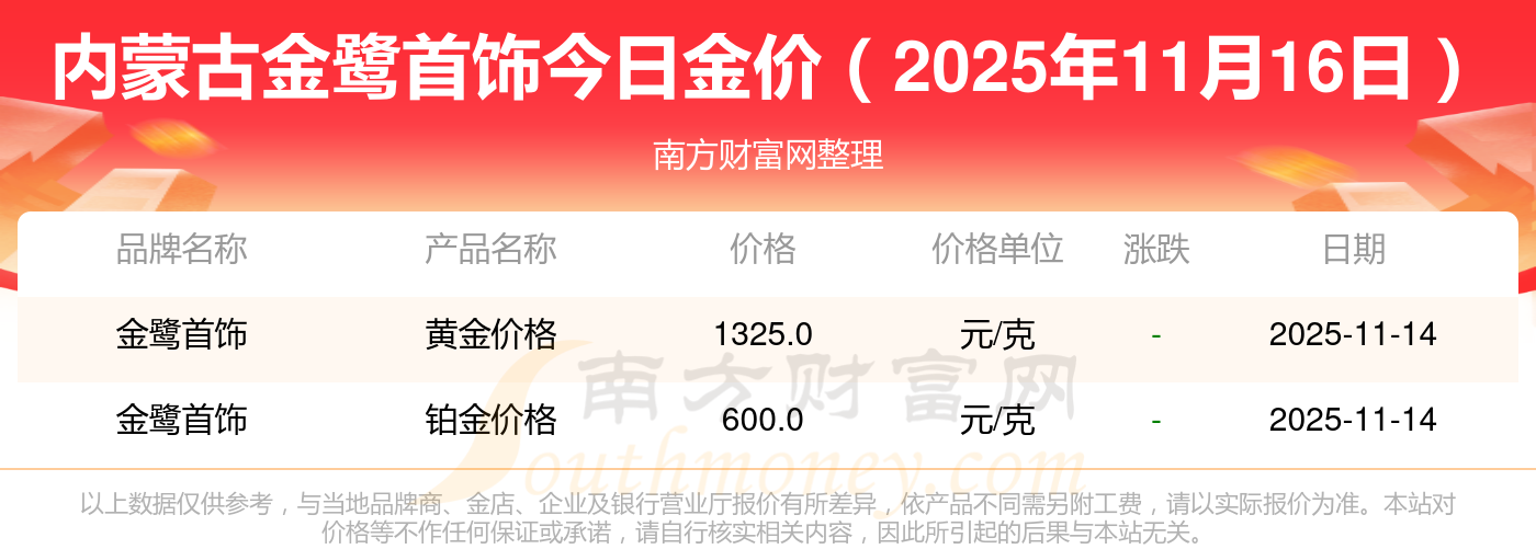 以上數(shù)據(jù)僅供參考,與當(dāng)?shù)亟鸬暧兴町,?qǐng)以實(shí)際價(jià)格為準(zhǔn)。