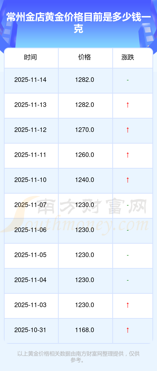1282.0元/克是常州金店在今日給出的 黃金價(jià)格最新價(jià)格。