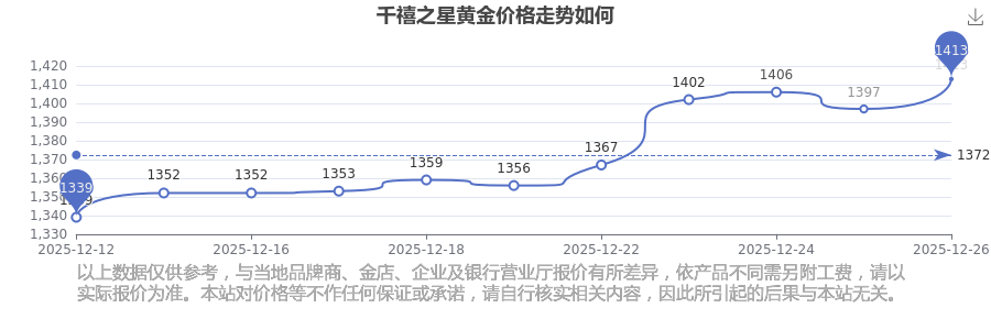 千禧之星 黃金價(jià)格在今日的最新價(jià)格顯示為1413.0元/克。
