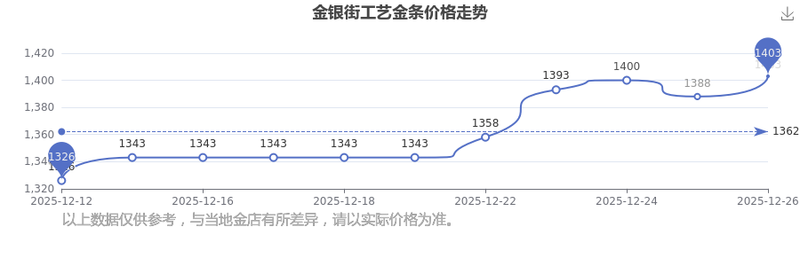 2025年12月28日金銀街工藝金條價格:1403.0元/克。