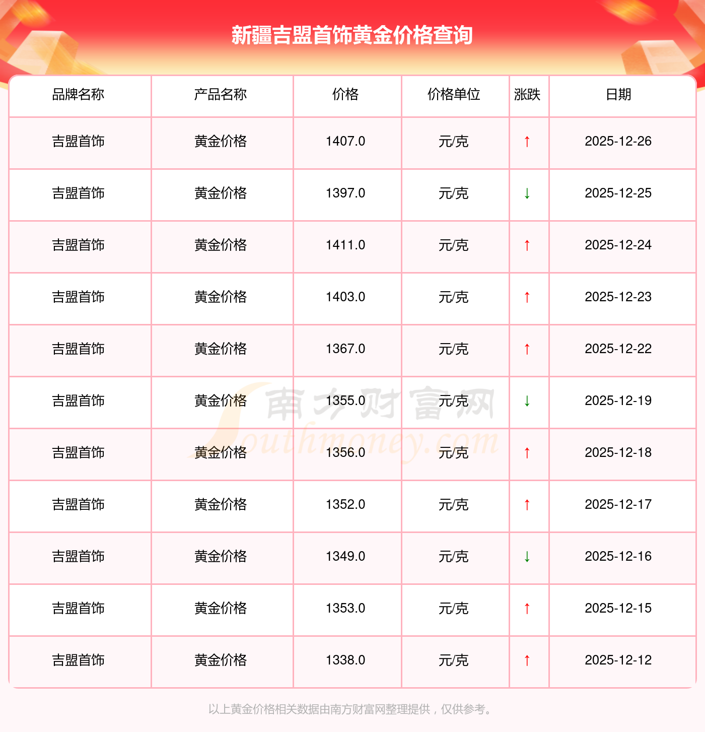 以上數(shù)據(jù)僅供參考,與當(dāng)?shù)亟鸬暧兴町,?qǐng)以實(shí)際價(jià)格為準(zhǔn)。