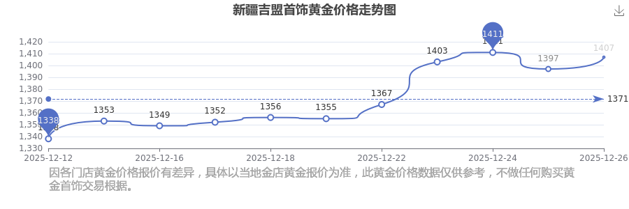 今日新疆吉盟首飾黃金價(jià)格最新價(jià)格是1407.0元/克。