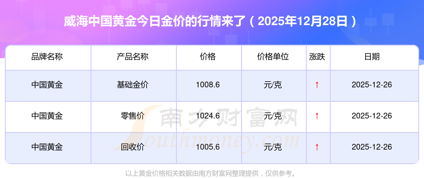 2025年12月28日威海中國黃金今日金價(jià)(_2025年中國黃金金價(jià)多少錢一克),隨小編來了解一下詳情。