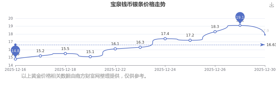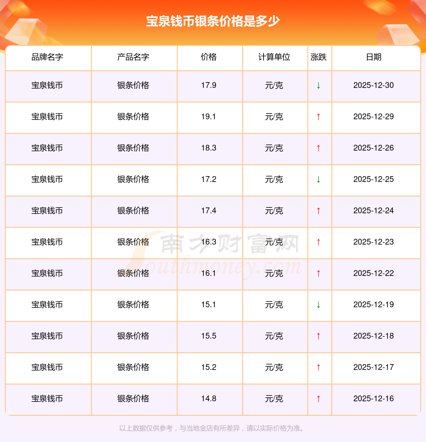 17.9元/克是寶泉錢幣在今日給出的 銀條價格最新價格。
