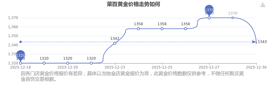 2025年12月30日菜百黃金價(jià)格查詢(xún):1342.0元/克。