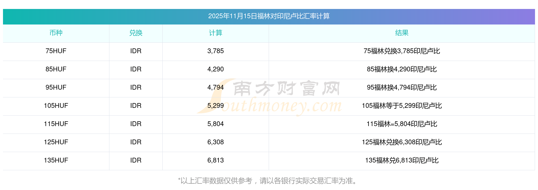 南方財富網(wǎng)為您提供福林對印尼盧比匯率最新價格詳情。
