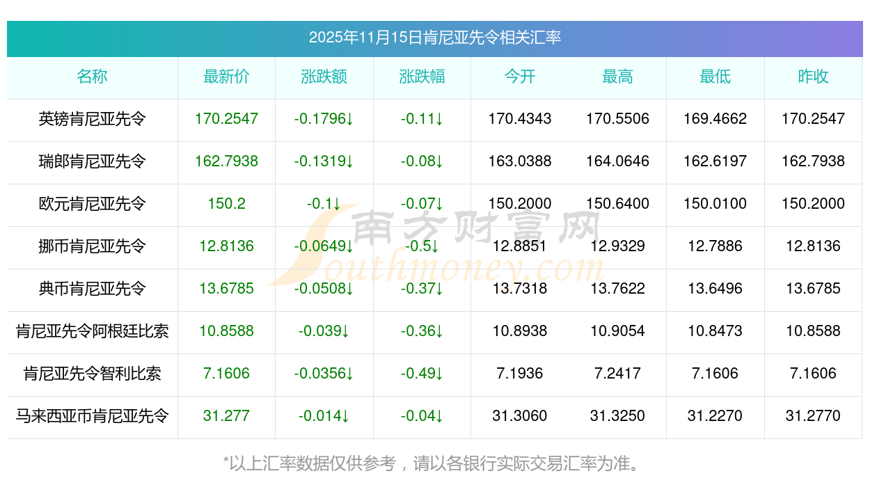 2025年11月15日肯尼亞先令相關(guān)匯率查詢