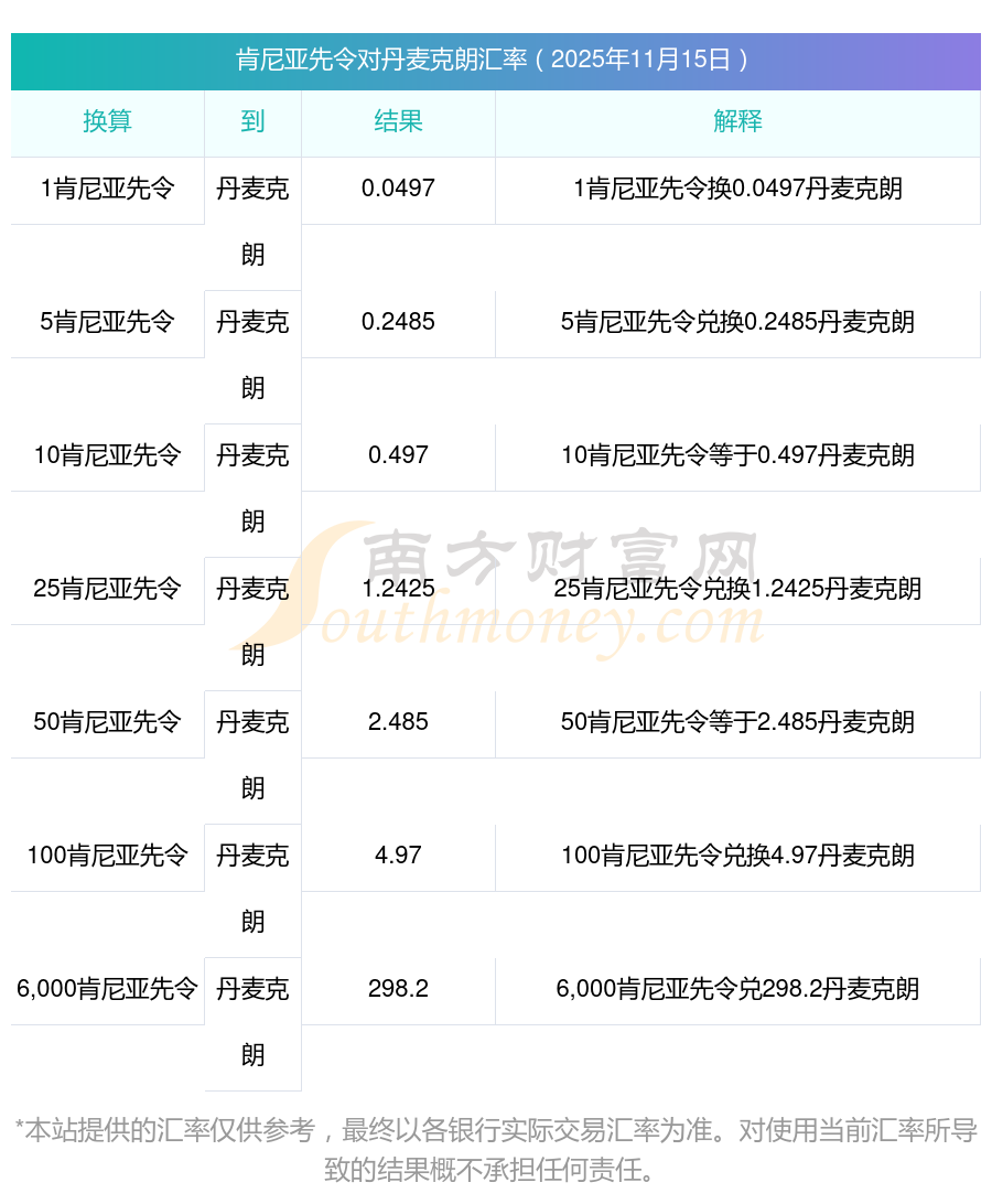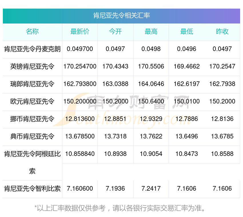 南方財(cái)富網(wǎng)為您提供肯尼亞先令對(duì)丹麥克朗匯率最新價(jià)格詳情。
