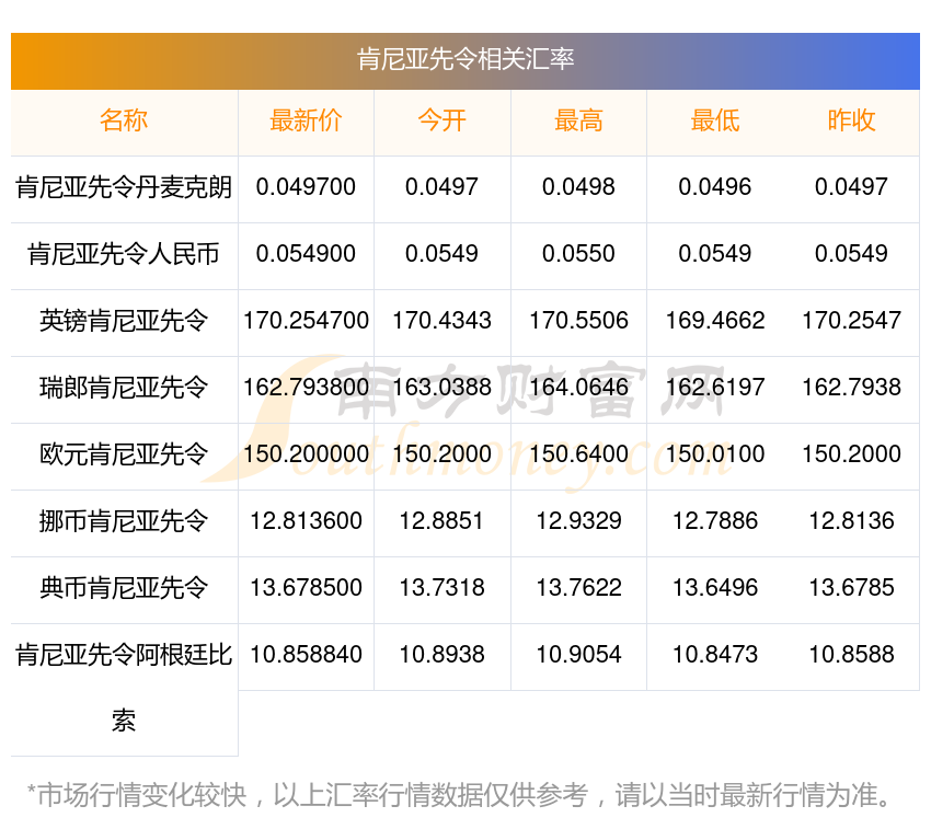 南方財(cái)富網(wǎng)為您提供肯尼亞先令對(duì)人民幣匯率最新價(jià)格詳情。