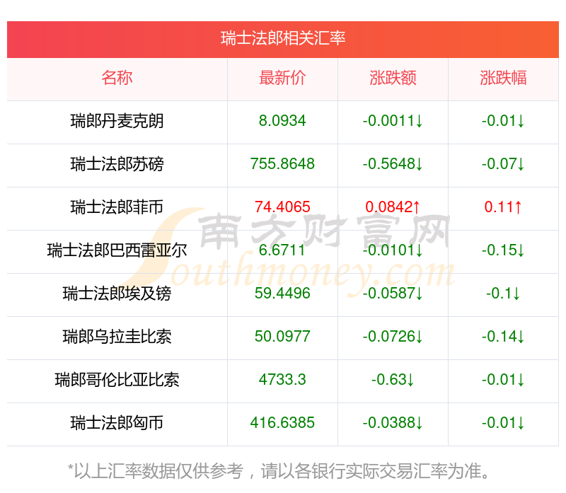 南方財(cái)富網(wǎng)為您提供瑞士法郎對(duì)蘭幣匯率最新價(jià)格詳情。