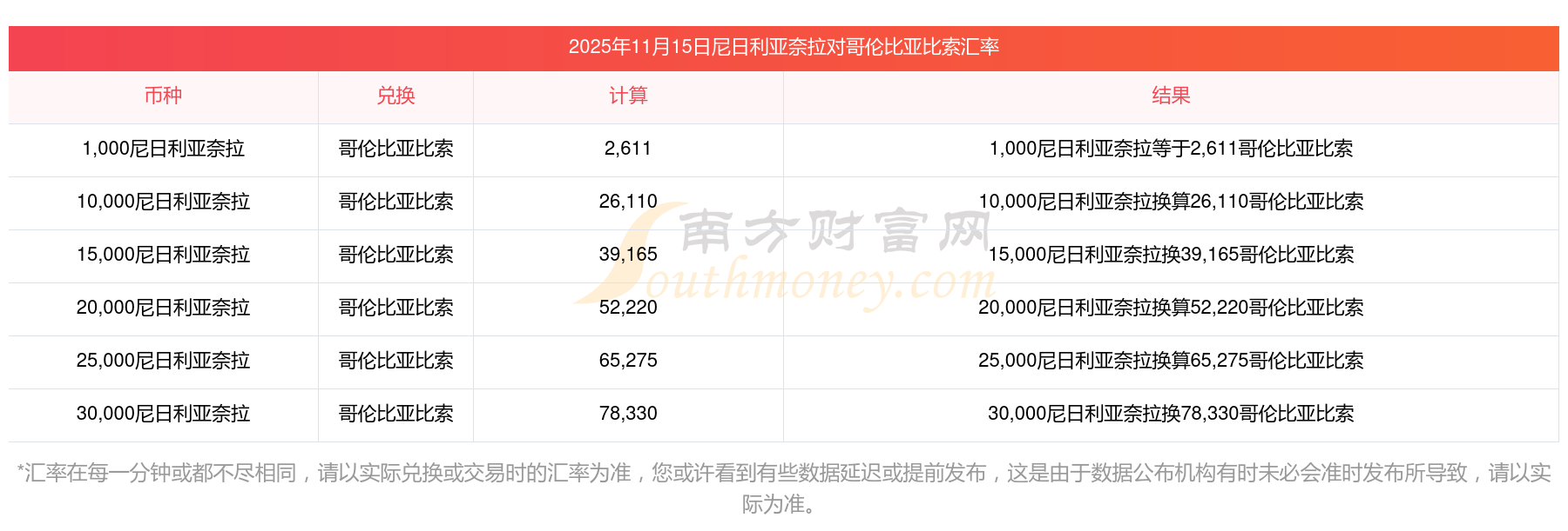 今尼日利亞奈拉11折算哥倫比亞比索匯率是多少 附查詢方法2025/11/15