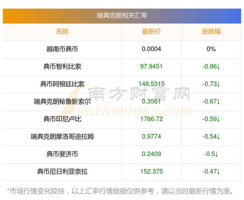 南方財富網(wǎng)為您提供瑞典克朗對克朗匯率最新價格詳情。