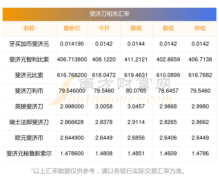 南方財富網(wǎng)為您提供斐濟刀對利幣匯率最新價格詳情。