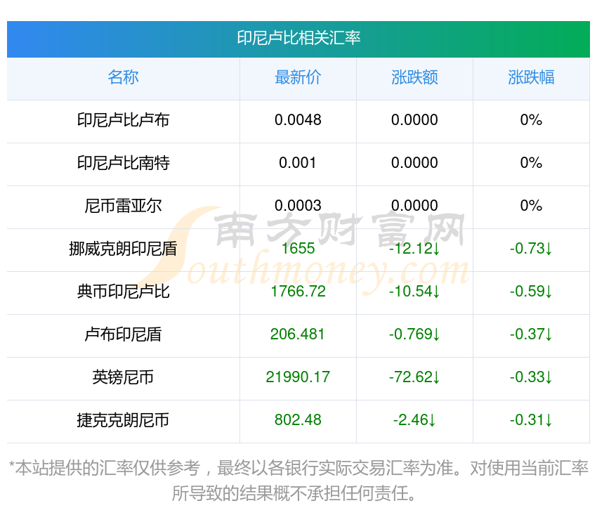 南方財(cái)富網(wǎng)為您提供印尼盧比對(duì)南特匯率最新價(jià)格詳情。