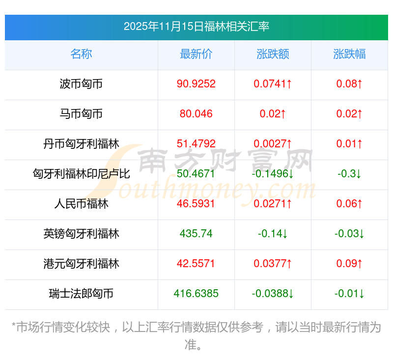 根據2025年11月15日匯率,福林兌換肯尼亞先令匯率最新價0.390700,今開價0.3907,昨收價0.3907,最高價0.3918,最低價0.3893。