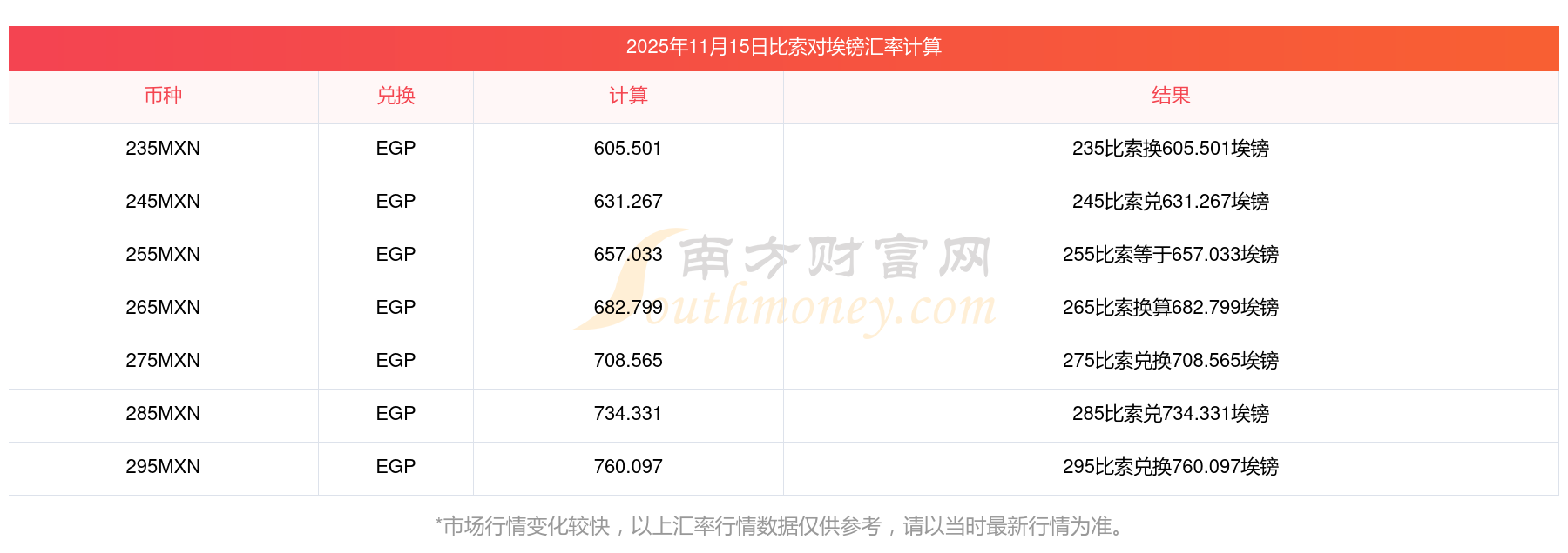 南方財(cái)富網(wǎng)為您提供比索對埃鎊匯率最新價(jià)格詳情。