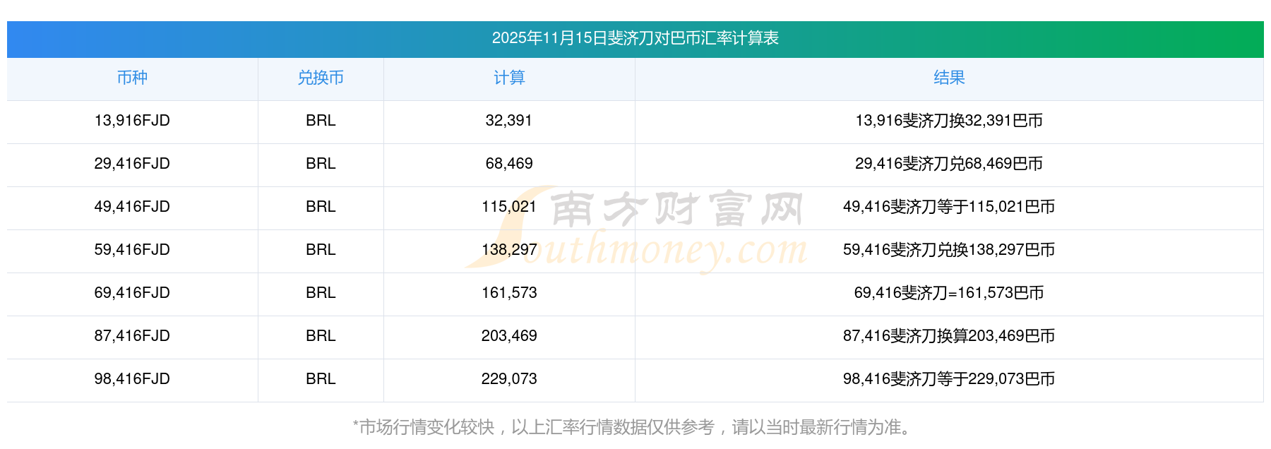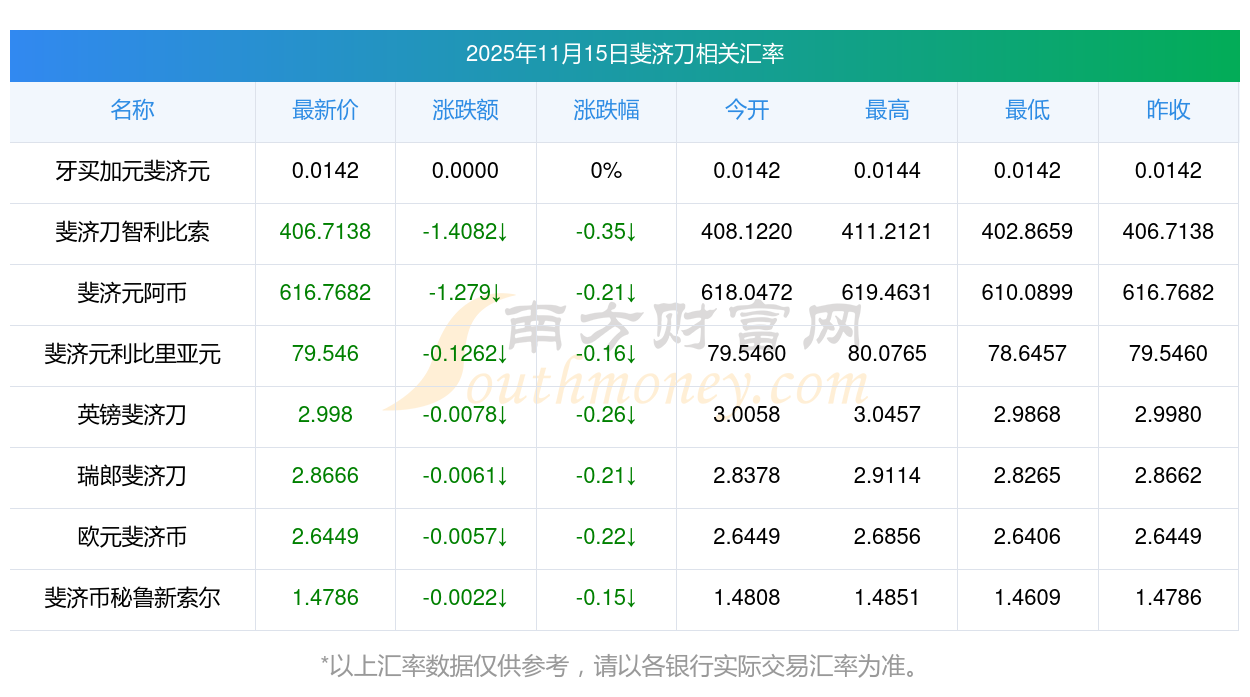 各大貨幣匯率: 斐濟(jì)刀兌換巴幣匯率多少2025/11/15