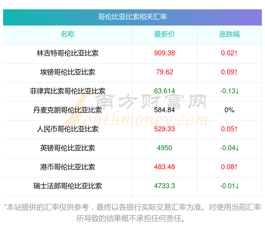 2025年11月15日哥倫比亞比索相關(guān)匯率查詢